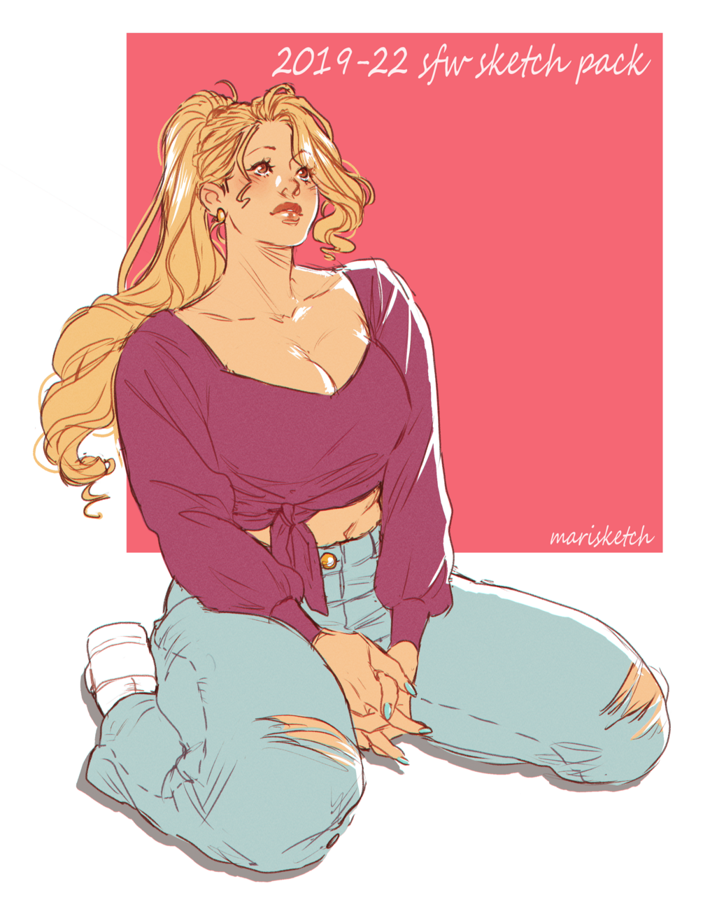 Archival sketch collection containing over 200 files of marisketch's art from 2019 to 2022, organized by date. Included are colored/uncolored sketches and works in progress, some of which have not been shared publicly. Both original content and fan art are present, while the original characters Ryou and Sabine are featured prominently.